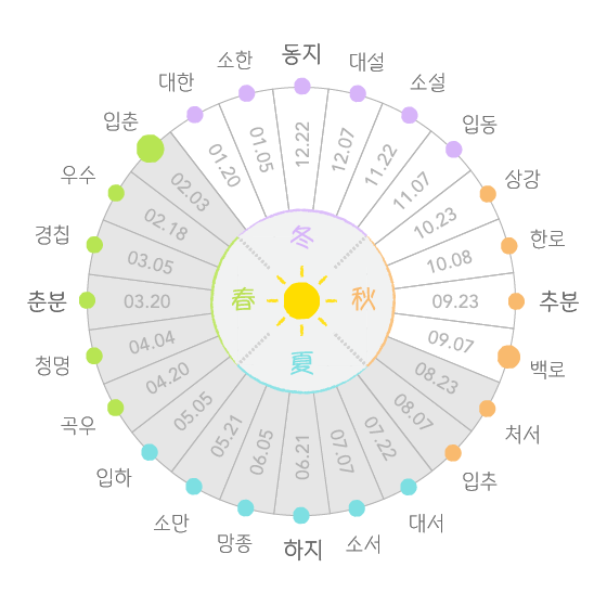24์ ๊ธฐ ์ค ์ด๋ค์ฏ ๋ฒ์งธ์ ํด๋นํ๋ ์ ๊ธฐ. ๋ฐฑ๋ก๋ ํฐ ์ด์ฌ์ ๋ปํ๋ค. ๋ฐค ๊ธฐ์จ์ด ์ด์ฌ์ ์ดํ๋ก ๋ด๋ ค๊ฐ ํ์์ด๋ ๋ฌผ์ฒด์ ์ด์ฌ์ด ๋งบํ๋ ์๊ธฐ๋ค. ์ฅ๋ง๊ฐ ๋ฌผ๋ฌ๊ฐ ํ์ฌ์ ๋ง์ ๋ ์จ๊ฐ ์ด์ด์ง๋ค. ํ์ง๋ง ์ด๋ฐ๊ธ ๋จ์ชฝ์์ ๋ถ์ด์ค๋ ํํ๊ณผ ํด์ผ๋ก ๊ณก์์ด ํผํด๋ฅผ ์