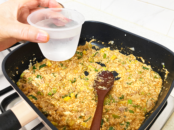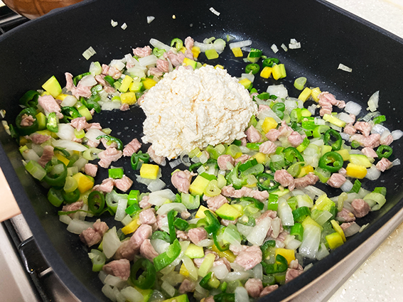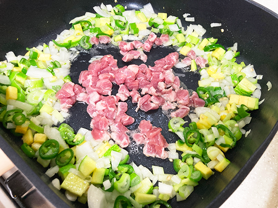 2. ๊ธฐ๋ฆ์ ๋๋ฅด๊ณ ๋ค์ง ์ฑ์๋ฅผ ๋จผ์ ๋ณถ๋ค๊ฐ ์๊ฒ ์ฌ ๋ผ์ง๊ณ ๊ธฐ, ์ผ๊นฌ ๋๋ถ, ๋์ฅ ์์ผ๋ก ๋ณถ๊ณ , ๋ง์ง๋ง์ ๋ฌผ 200ml ์ ๋๋ฅผ ๋ถ๊ณ ์๋ฐํ๊ฒ ๋์ฌ์ค.