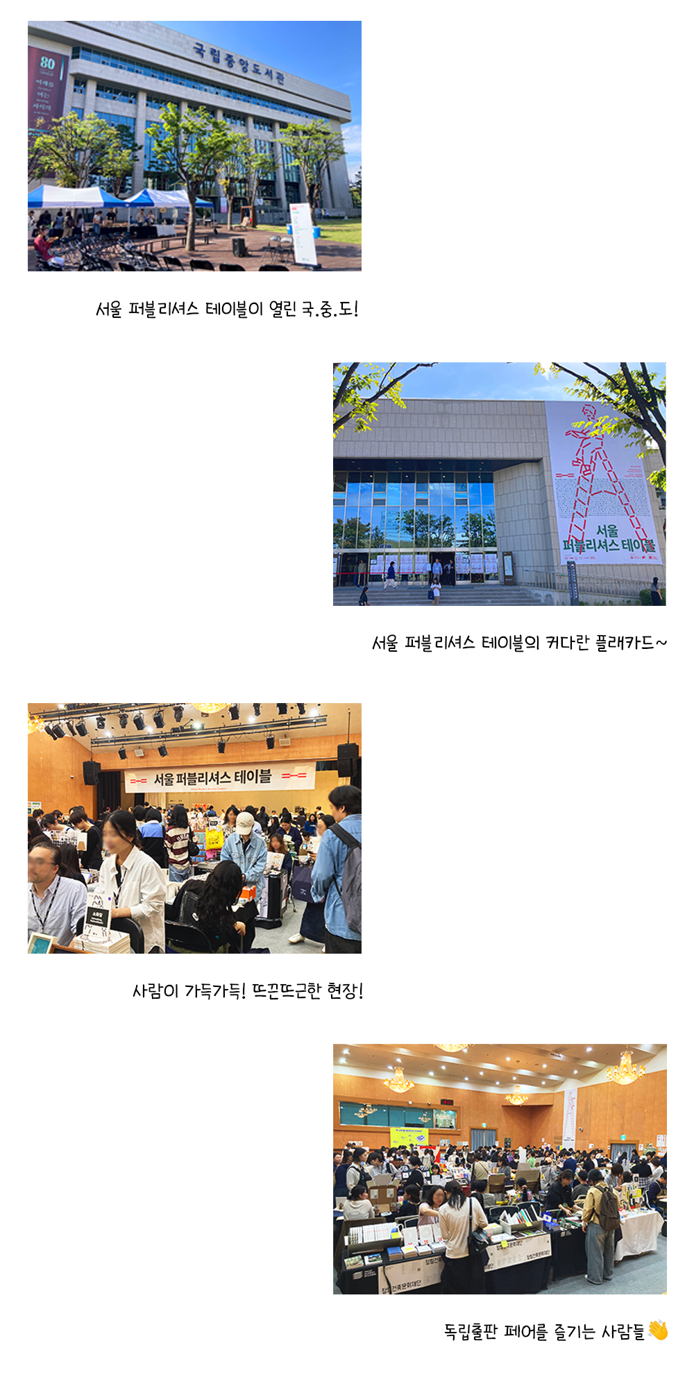 맑은 날씨와 기분 좋은 바람과 함께 ‘2025 서울 퍼블리셔스 테이블_독립출판 페어’가 10월 17일부터 19일까지 3일간 국립중앙도서관 국제회의장에서 개최되었어.