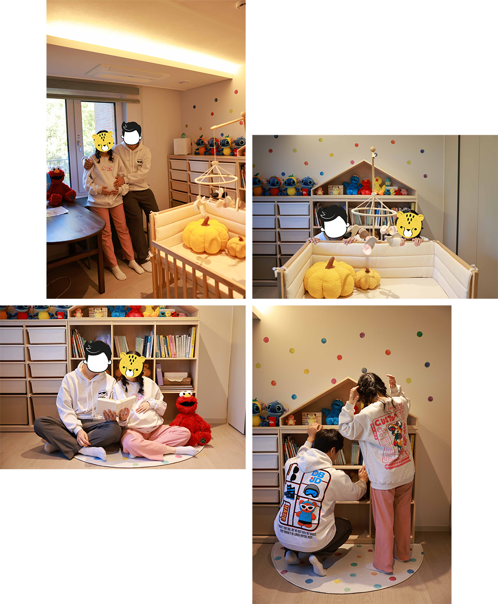 언제부턴가 흰색이나 아이보리색의 차분한 톤으로 통일된 인테리어가 유행이다. 아기 방까지 그렇게 꾸미는 것이 이젠 거의 스테디인 듯한 그 인테리어는 그러나 전혀 나의 취향이 아니었다. 나는 원색을 좋아하는걸. 내 최애 캐릭터 중 하나는 〈세서미 스트리트〉의 쿠키몬스터이고(파란색) 아기의 애착 인형은 이미 엘모(빨간색)로 정해 버렸는걸. 스티치 인형은 내가 제일 좋아하는 파란색 몸에 빨주노 코스튬을 입어서 백여 개의 인형들을 처분하는 동안에도 끝까지 살아남아 아기 방에 놓일 준비를 마쳤는걸! 물방울무늬 스티커는 벌써 몇 년 전에 사두었고 구구절기 멤버들과 함께 제작한 단행본 시리즈(책등이 알록달록함)도 아기 방에 놓기로 이미 마음 먹었기 때문에 결국 우리 아기의 방은 이렇게 완성되었다.