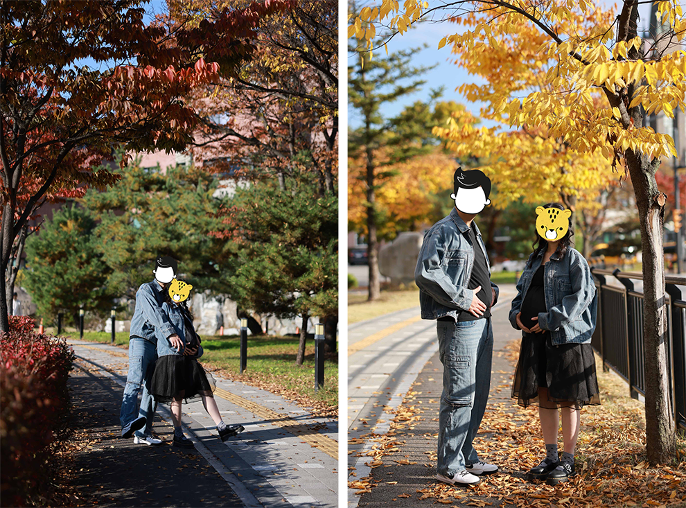 하늬바람이 먼지도 구름도 말끔히 밀어내 하늘이 깨끗하게 푸르른 날이었다. 비가 오지는 않을까 걱정했는데 딱 마침 전날 밤에만 살짝 내린 비가 오히려 당일 아침을 한결 말갛고 청초하게 만들어놓았다. 노래 ‘가을 아침’의 가사처럼 꼭 ‘창문 하나 햇살 가득 눈부시게 비쳐오고 서늘한 냉기에 재채기 할까 말까’ 한 완벽한 날. 만삭 사진 촬영에 딱이로군, 기분 좋은 마음으로 촬영 준비를 시작한다.